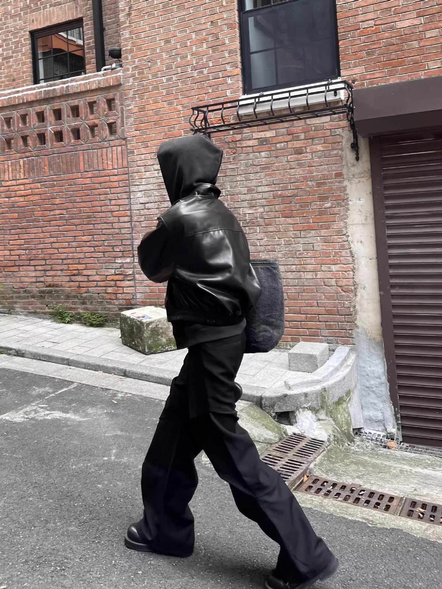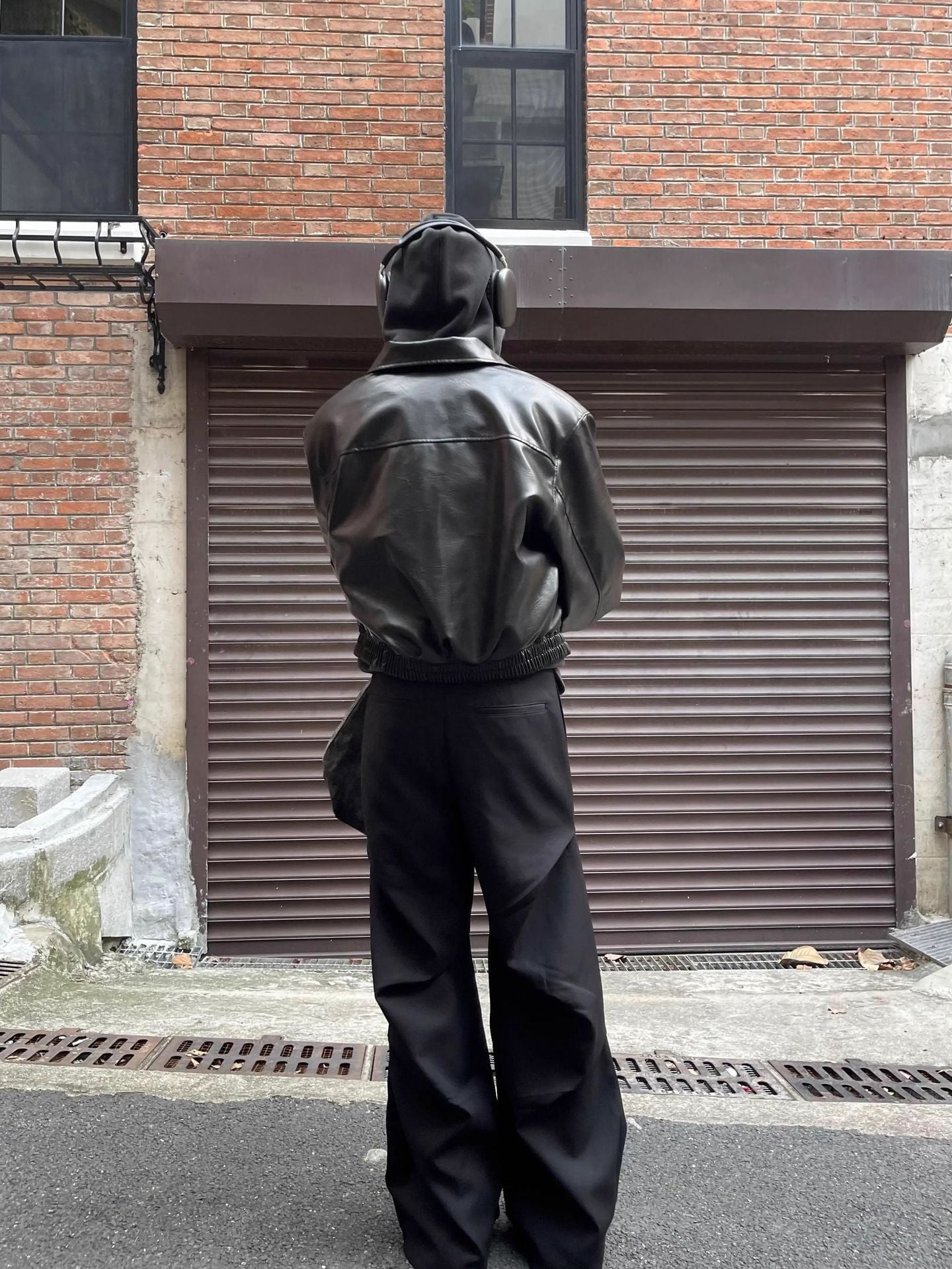 Black PU Leather Padded Shoulder Casual Short Jacket