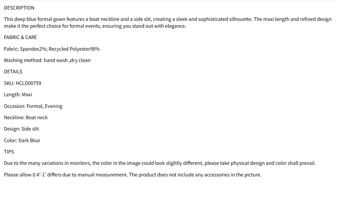 Formal Evening Dress Deep Blue Boat Neck Side Slit Maxi Gown