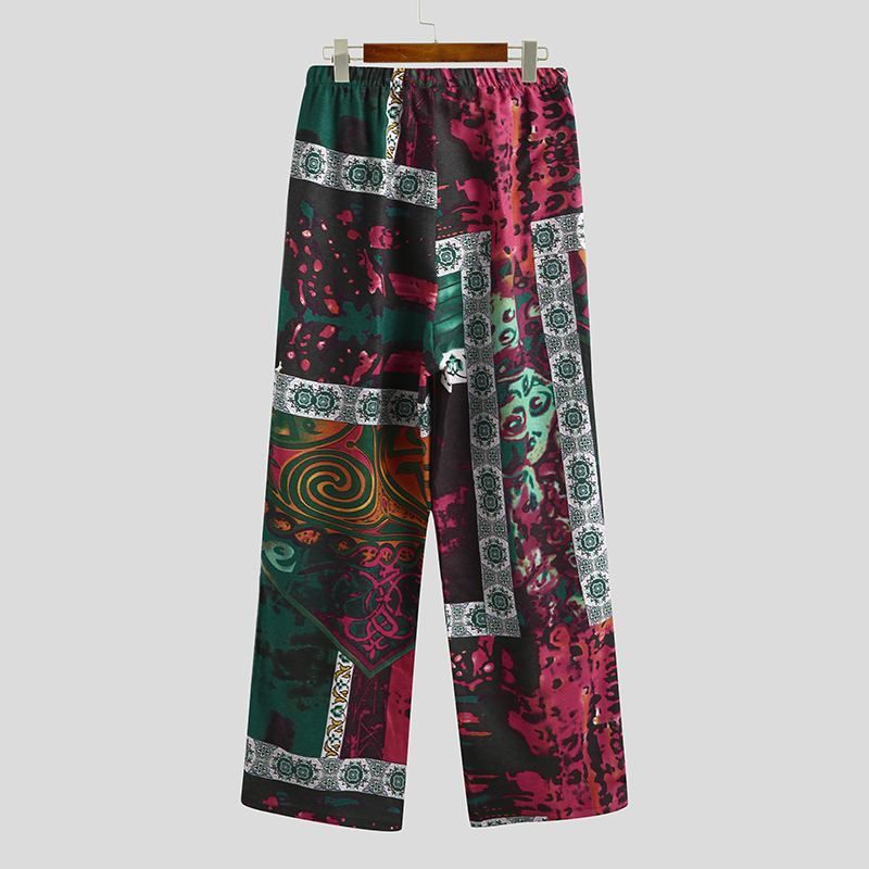 Men Pajamas Sets Men Half Sleeve V Neck Printed Lace Up
