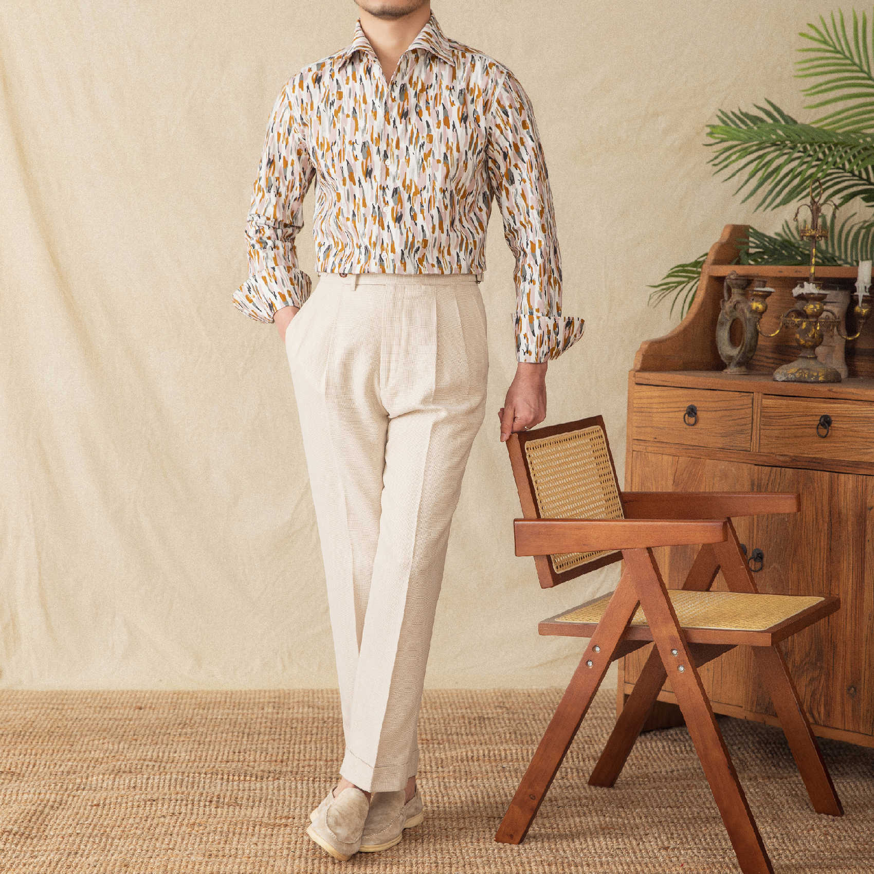 Men's Floral Long-sleeved Cardigan Cotton Shirt