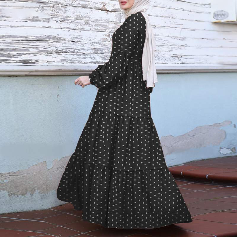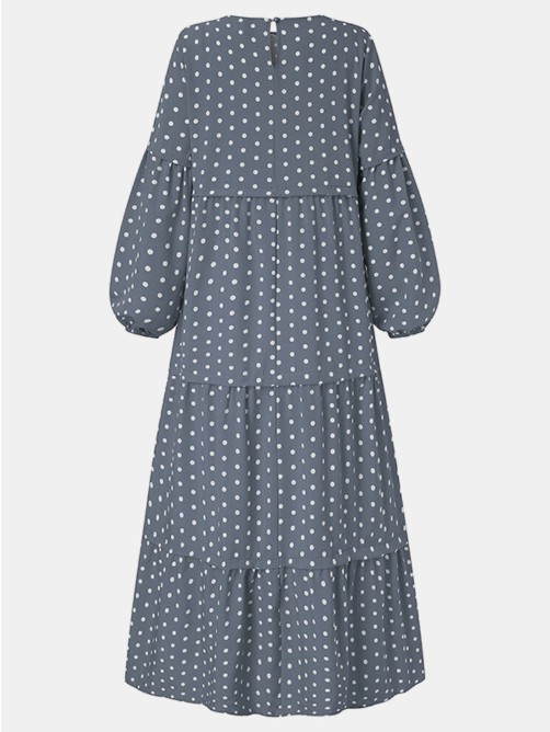 Polka Dot Print Round Neck Puff Long Sleeve Stitching Maxi Dress