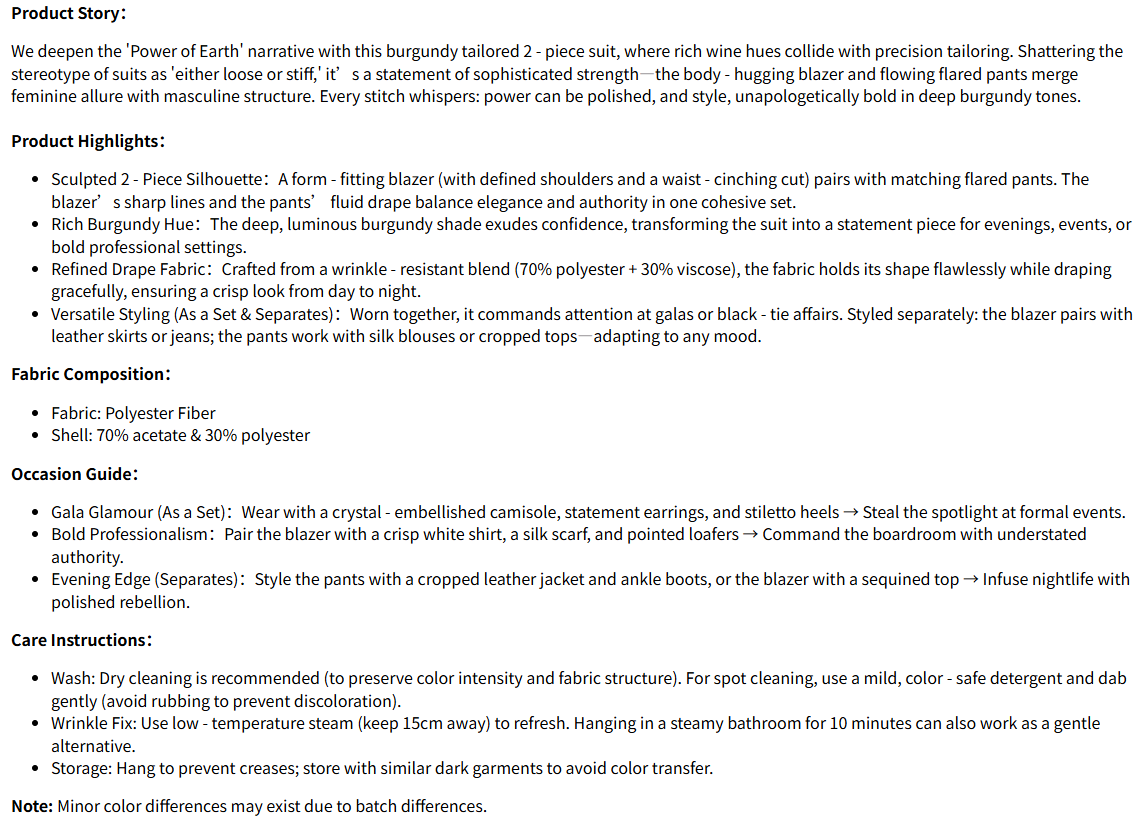 Power Of Earth Burgundy Sculpted 2-Piece Suit