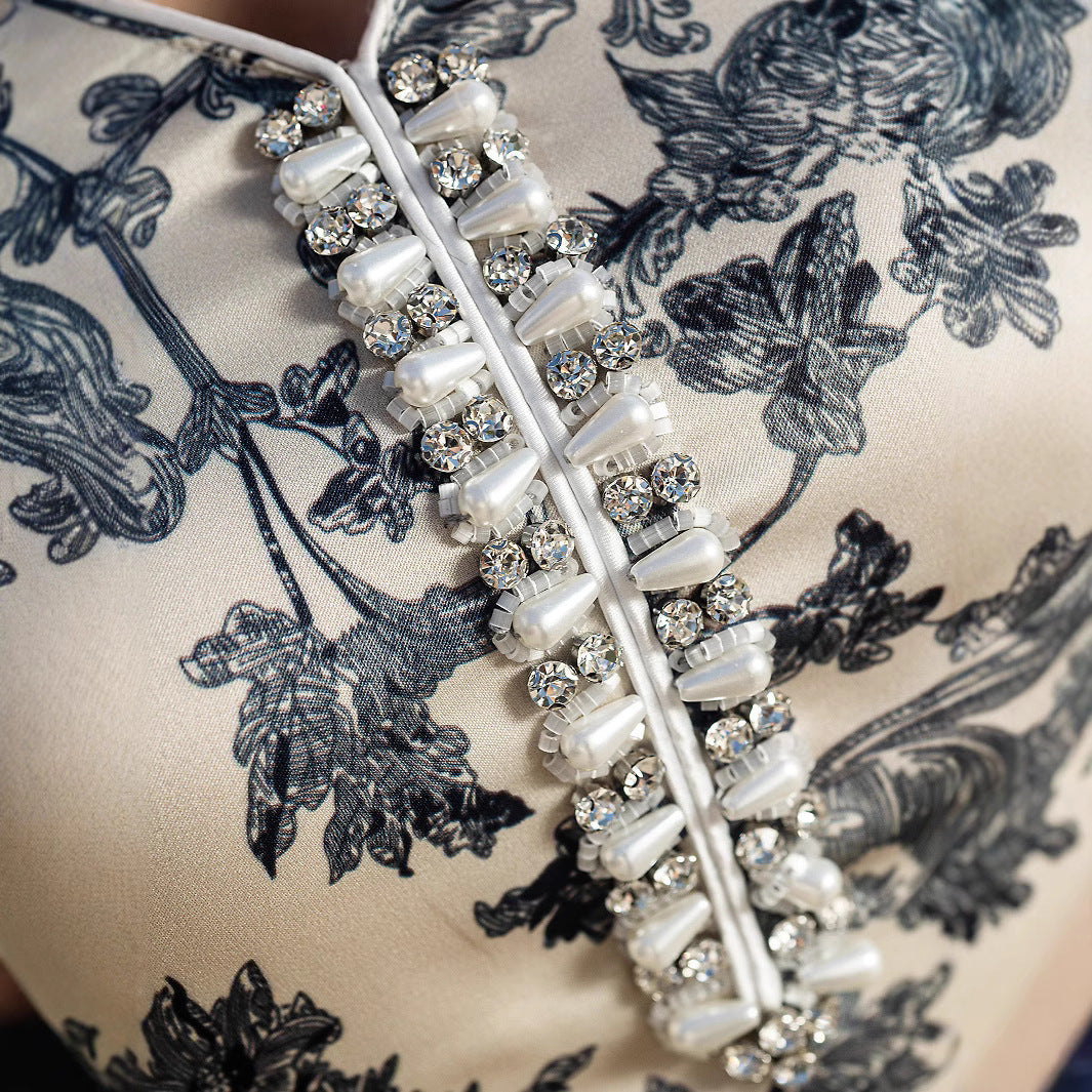 V-neck Satin Printed Muslim Dress