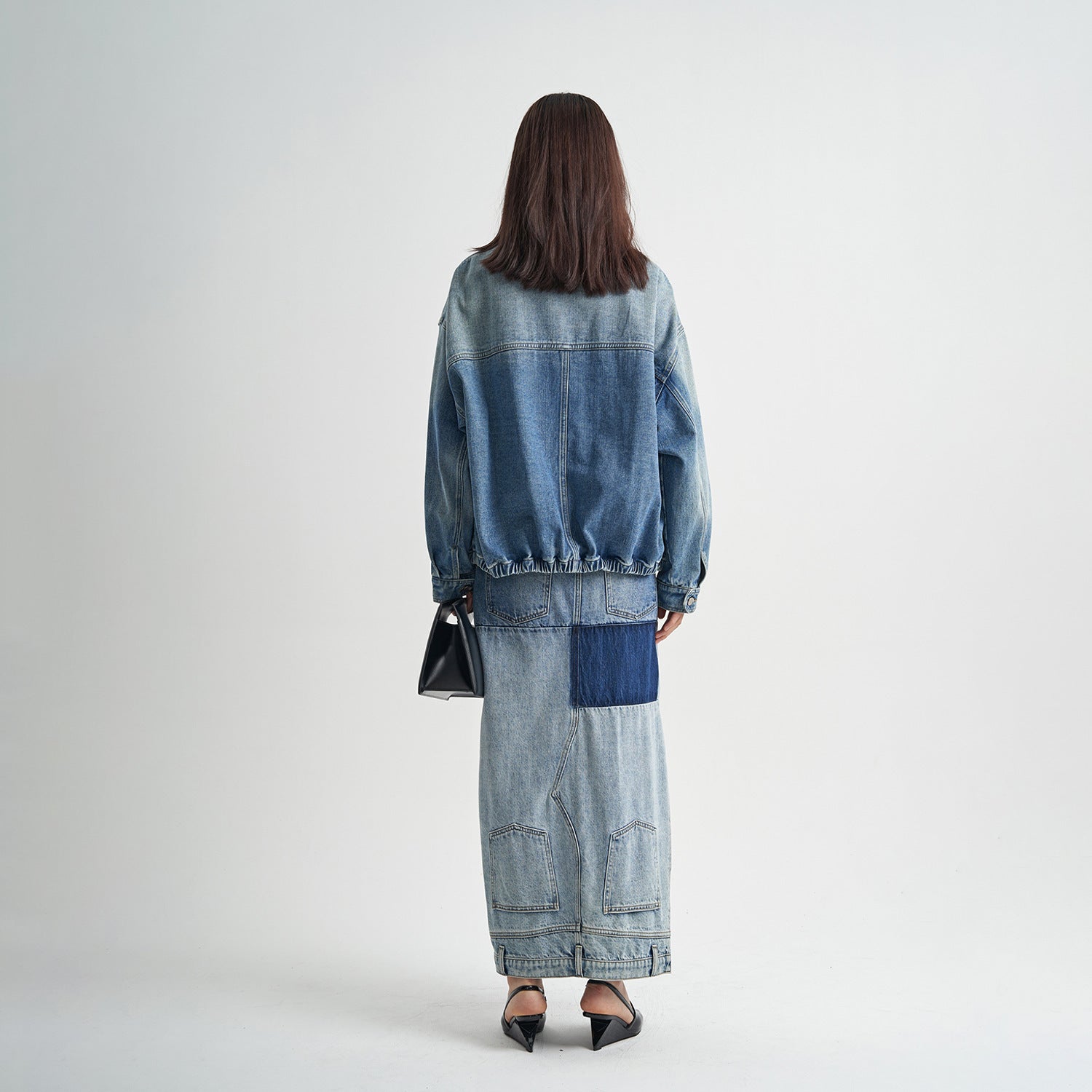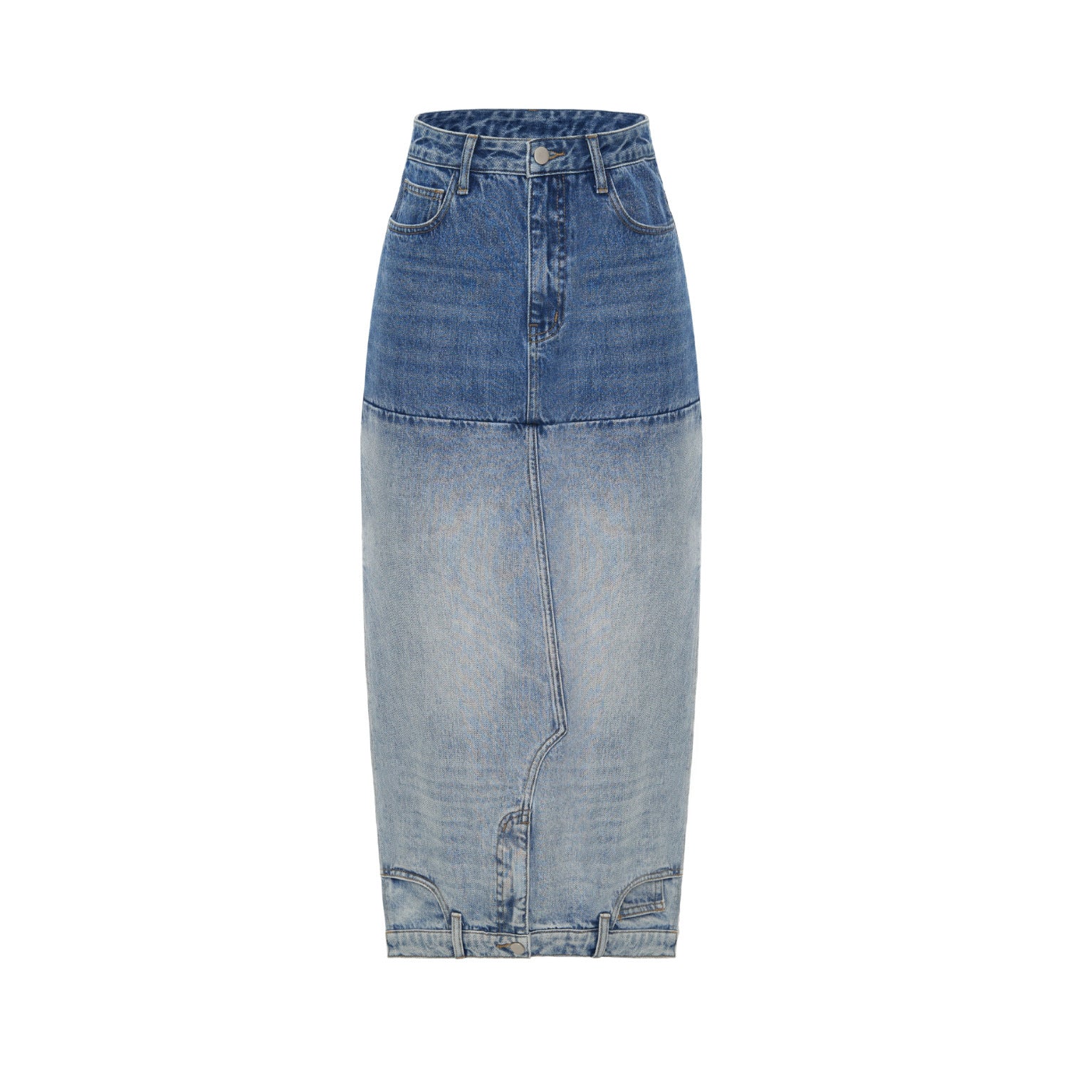 Washed Denim Long Skirts Stitching Design Women's Clothing
