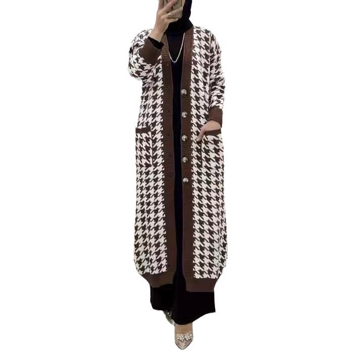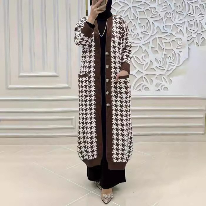 Women's Middle East Muslim Houndstooth Woolen Cardigan Jacket